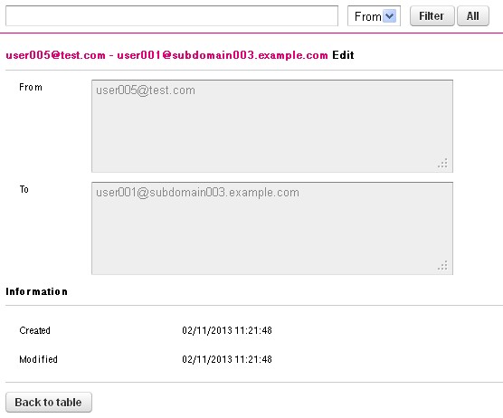 Email address (xxx@localexample.com) or domain (@localexample.com) of the recipient. Multiple addresses can be entered with delimiters (comma or semicolon).